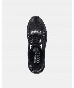 Versace lace-up sneaker in leather with fabric inserts,