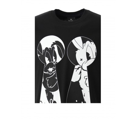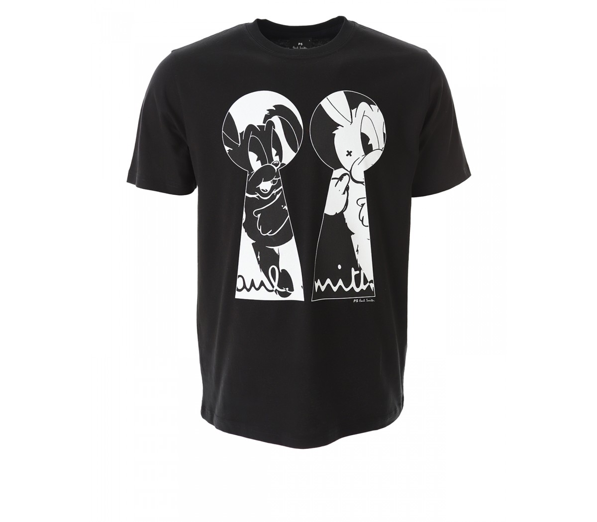 KEYHOLE BUN PRINT T-SHIRT IN BLACK