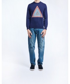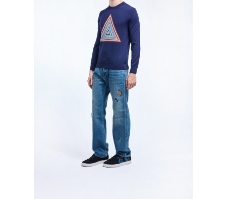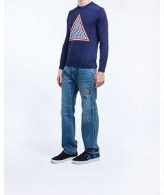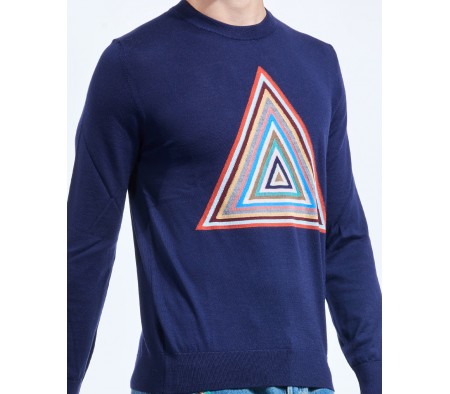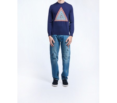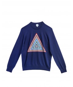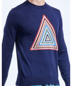 PYRAMID STRIPE INTARSIA SWEATER IN BLUE MULTI