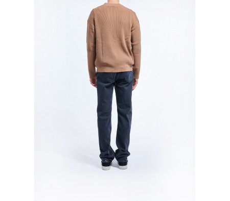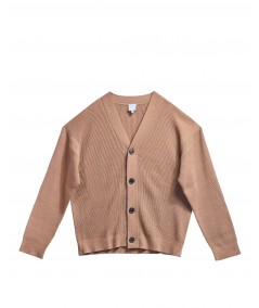 a ribbed knit, V-neckline, and button fastening