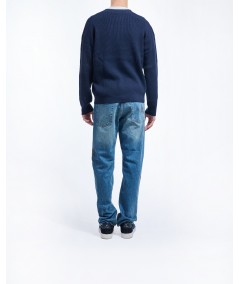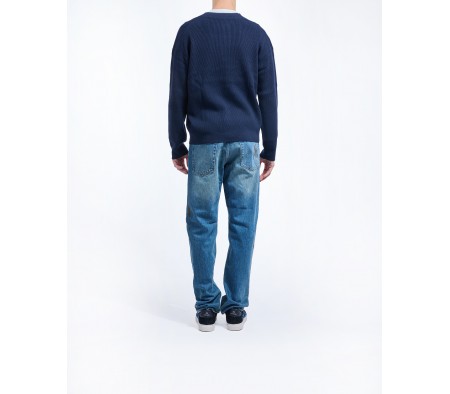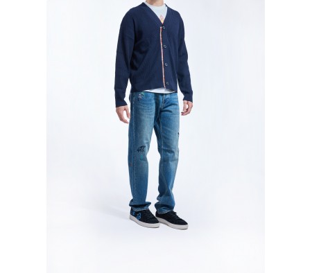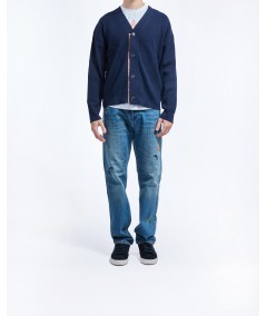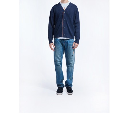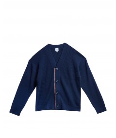 MERINO BLEND RIBBED CARDIGAN IN BLU