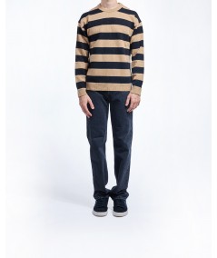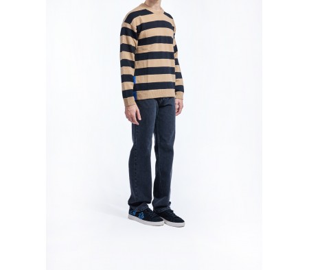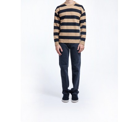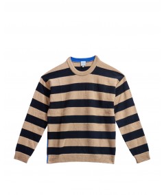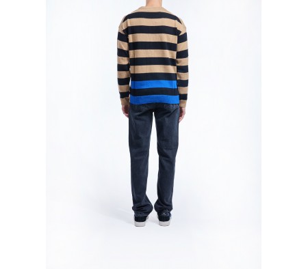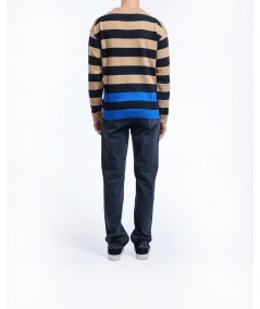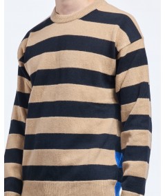 LAMBSWOOL BLEND STRIPED SWEATER IN BROWN MULTI