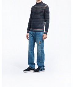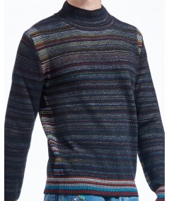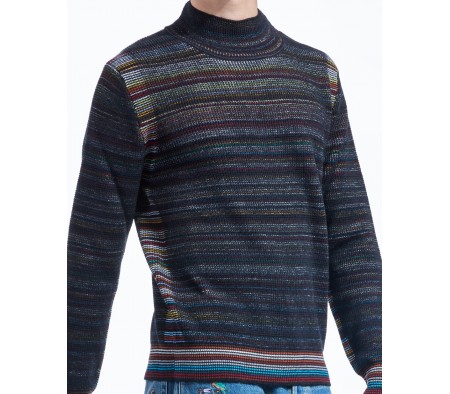 HIDDEN STRIPE MERINO TURTLENECK IN BLACK MULTI