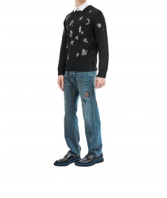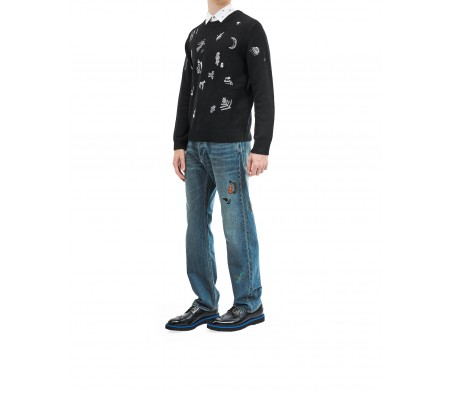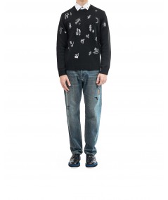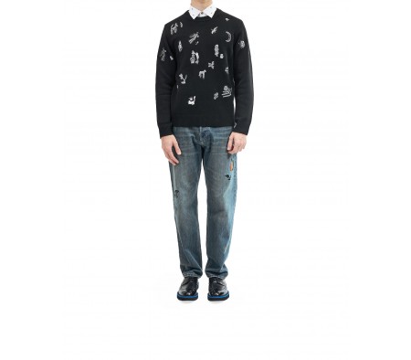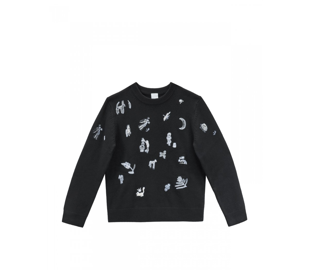 LITTLE BEASTS EMBROIDERY SWEATER IN BLACK MULTI