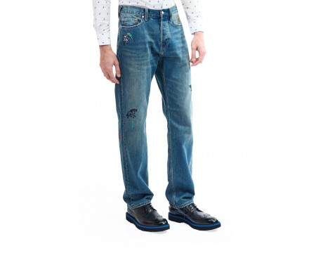 EMBROIDERED LITTLE BEASTS JEANS IN DENIM