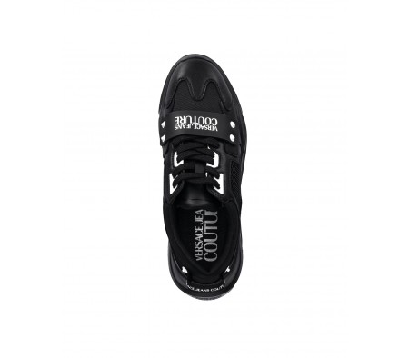 Versace leather sneaker with fabric inserts and dynamic