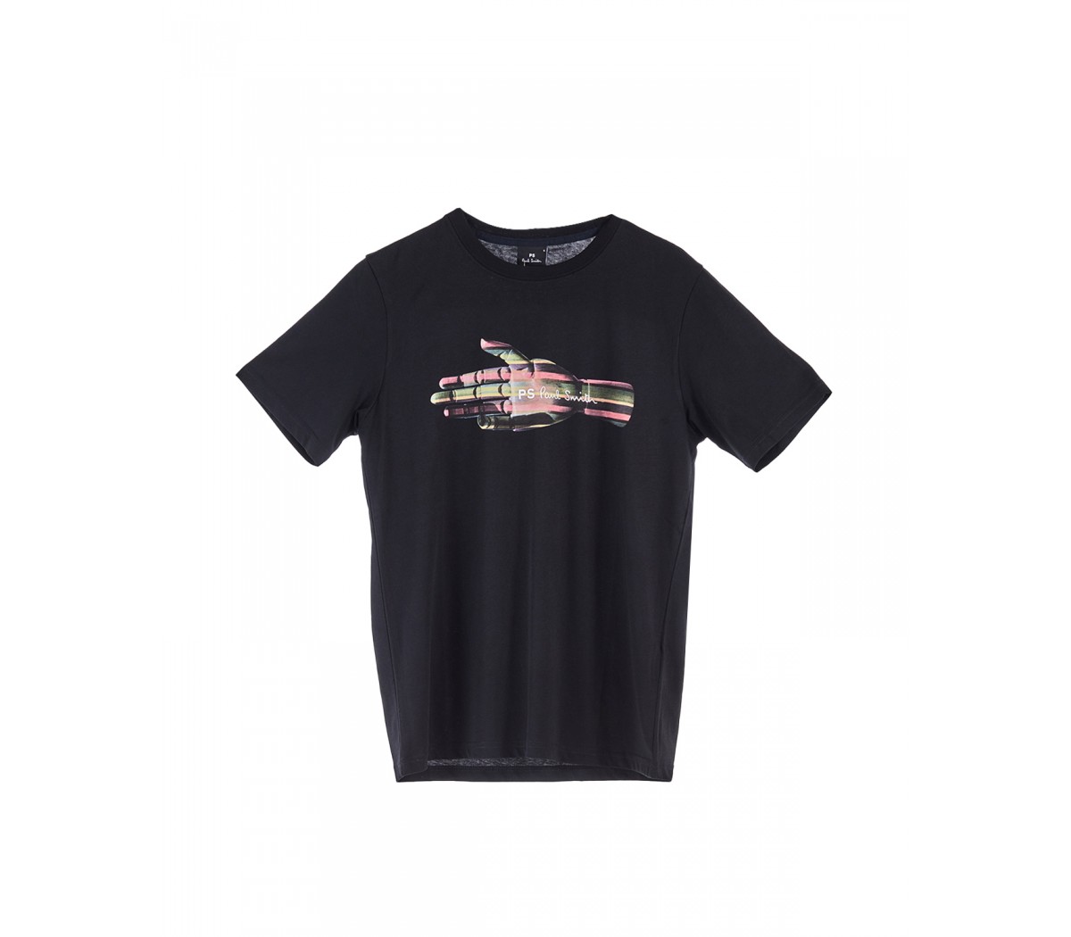 BLACK MULTI-STRIPED HAND T-SHIRT