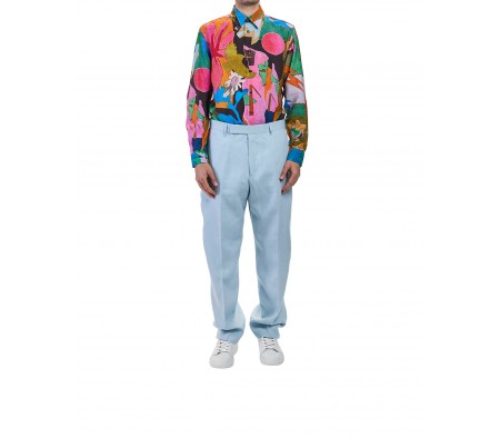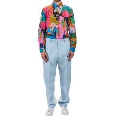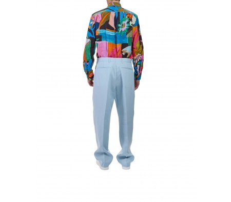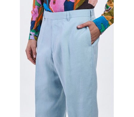 WIDE LINEN TROUSERS IN LIGHT BLUE