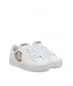Versace smooth leather sneakers with white laces,