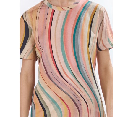 of the iconic "Swirl" pattern, finished with a ribbed crew neck and