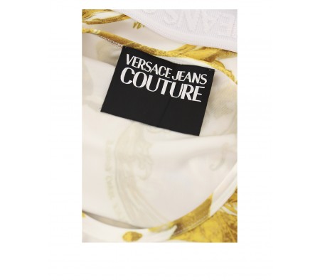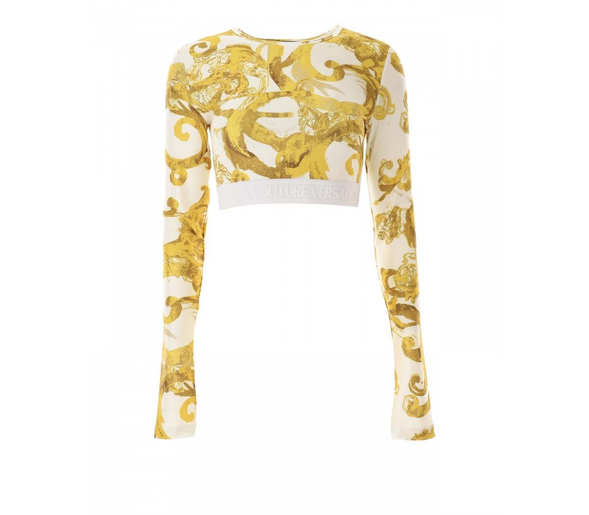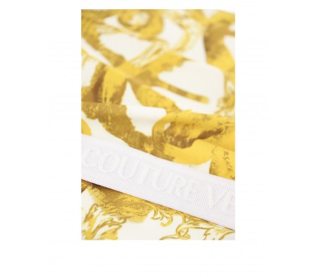 Couture gold and jacquard Institutional logo on the elasticated waist.