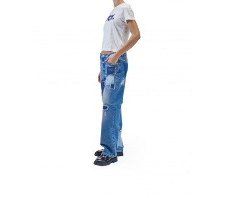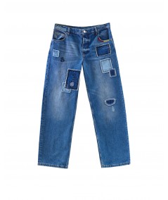 PATCHWORK STRAIGHT JEANS IN DENIM