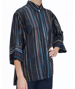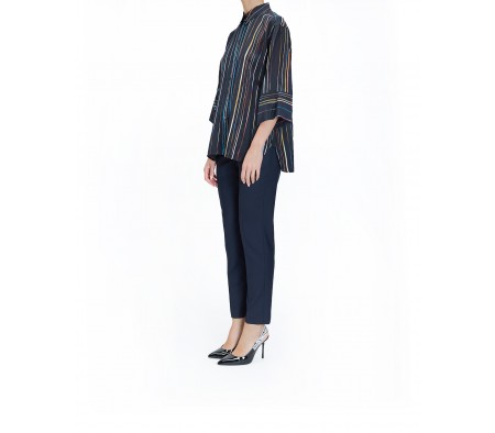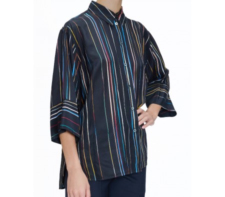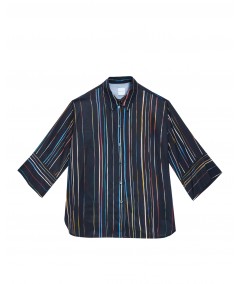 Classic Stripe 3/4 Sleeve Silk Shirt