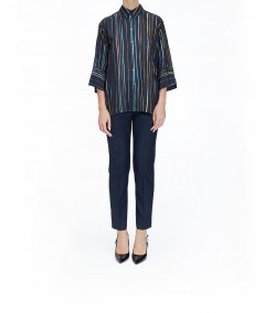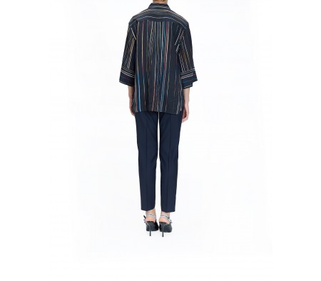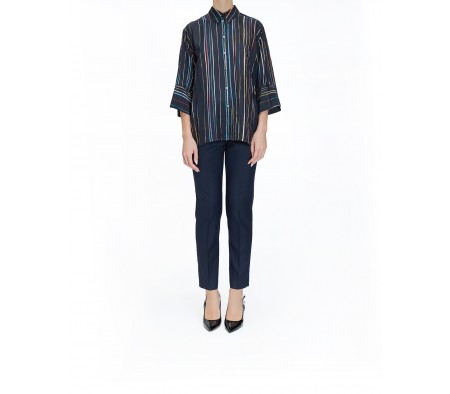 CLASSIC STRIPE 3/4 SLEEVE SILK SHIRT IN BLUE MULTI