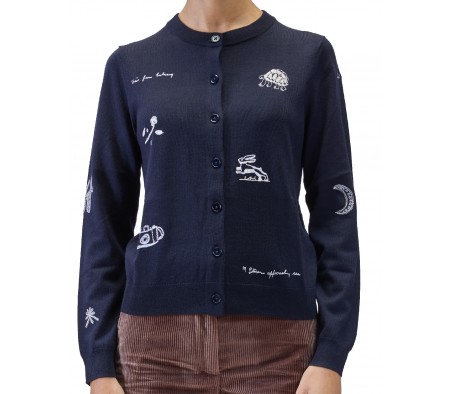 LITTLE BEASTS EMBROIDERY CARDIGAN IN BLUE