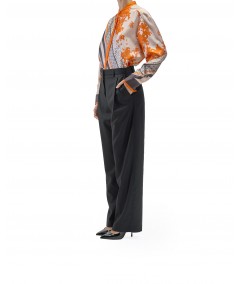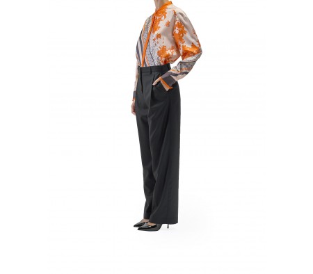 PLEATED FLANNEL TROUSERS IN BLACK