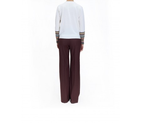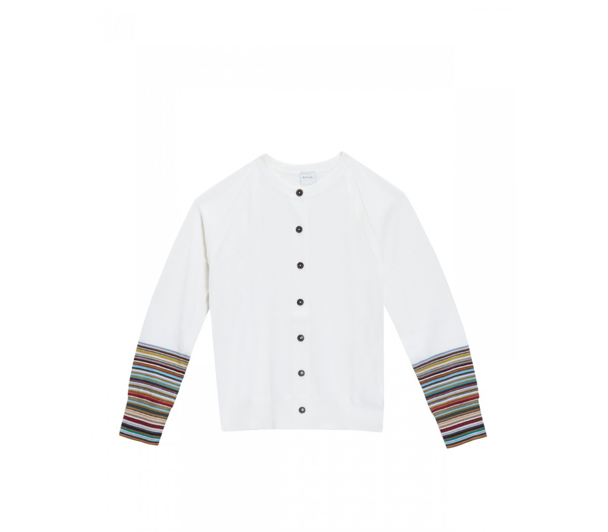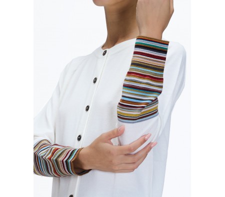 MERINO STRIPED SLEEVE CARDIGAN IN WHITE MULTI