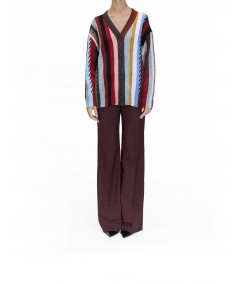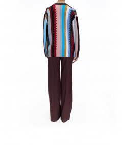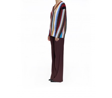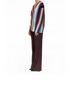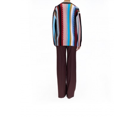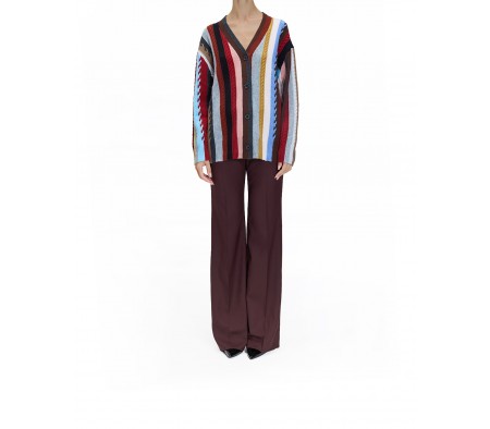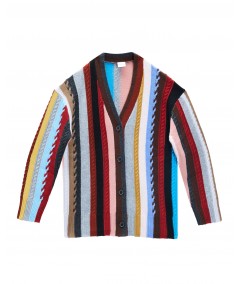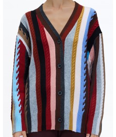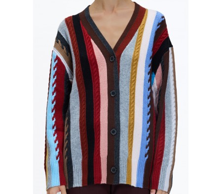 OVERSIZE STRIPED CABLE KNIT CARDIGAN IN CASHMERE BLEND MULTICOLOR
