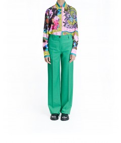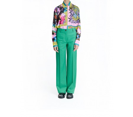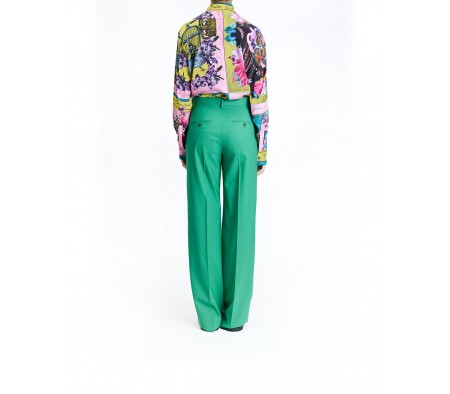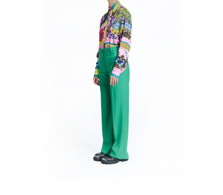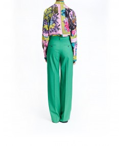 WIDE-LEG STRETCH WOOL TROUSERS IN GREEN