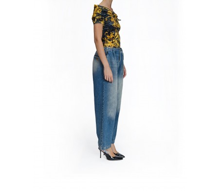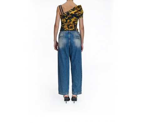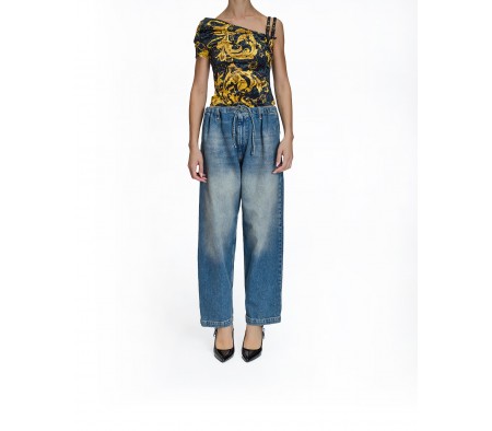 ONE-SHOULDER BAROQUE TOP IN BLACK MULTI