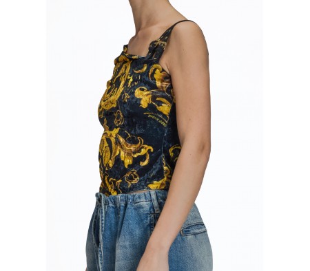 Versace one-shoulder top in velvet, featuring an