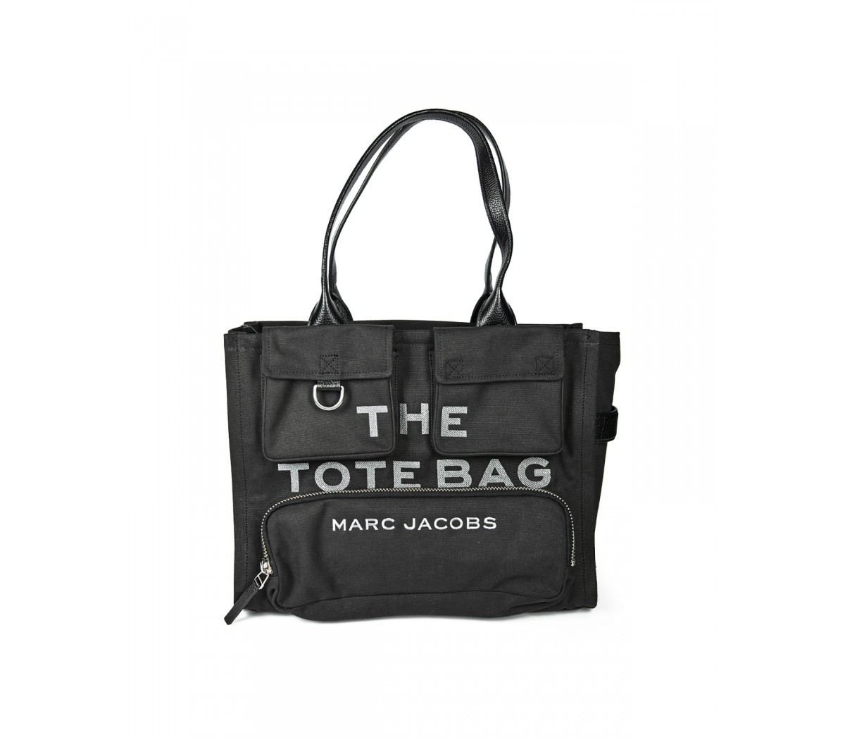 a contrasting “The Tote Bag” print and cargo-style pockets on the front.