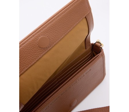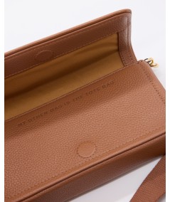 and card compartments; can be carried by hand as a clutch or over the shoulder.