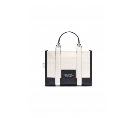 LEATHER MEDIUM TRAVELER TOTE IN BLACK AND WHITE