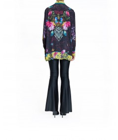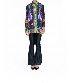 Camicia in twill di Versace con stampa stagionale piazzata, caratterizzata da un colletto classico e una abbottonatura frontale nascosta