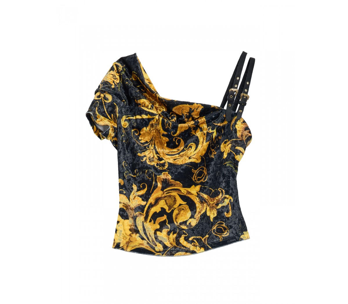 Top monospalla di Versace in velluto, caratterizzato dalla