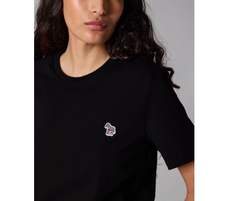 T-shirt a maniche corte girocollo nera realizzata in cotone organico al 100%. Caratterizzata dal classico motivo PS logo Zebra multicolor applicato sul davanti. Banda multicolore interna nel retro del sottocollo.