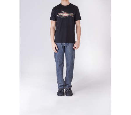 T-SHIRT MANO MULTIRIGHE IN NERO