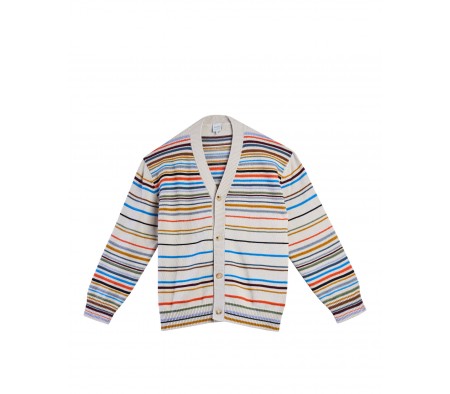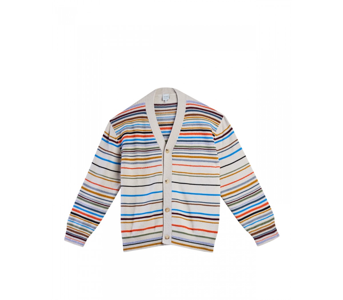 CARDIGAN RIGA CLASSICA IN BIANCO E MULTI